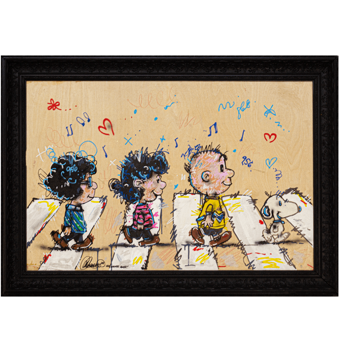 Step into the world of iconic pop culture with “Snoopy in Abbey Street”, an acrylic painting on wood inspired by the legendary Beatles’ Abbey Road album cover. In this unique twist, Snoopy takes center stage, striding across the famous crosswalk with his signature charm and playful energy. The vibrant colors and bold lines bring the classic moment to life, while the natural wood grain adds depth and warmth to the piece.