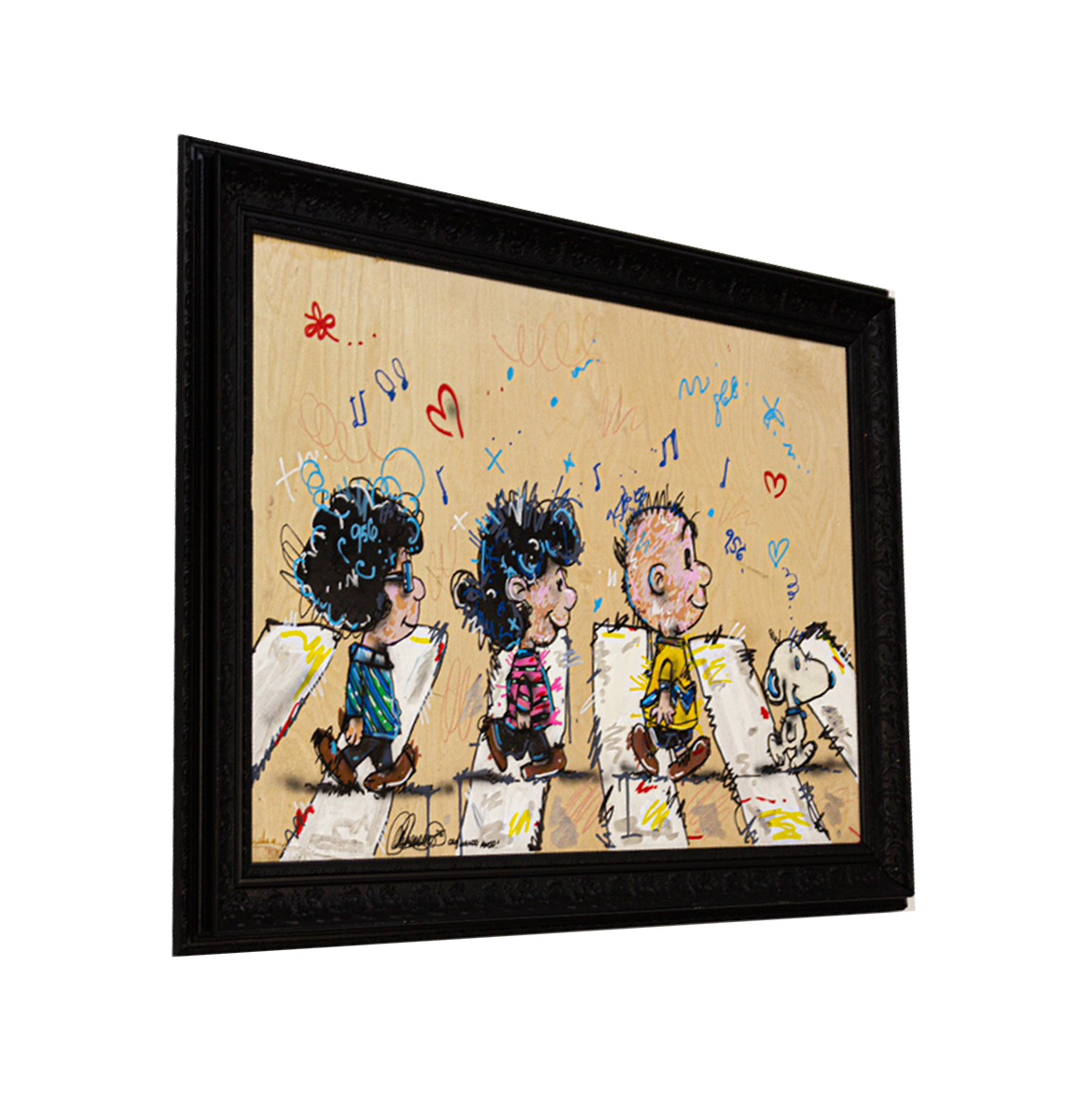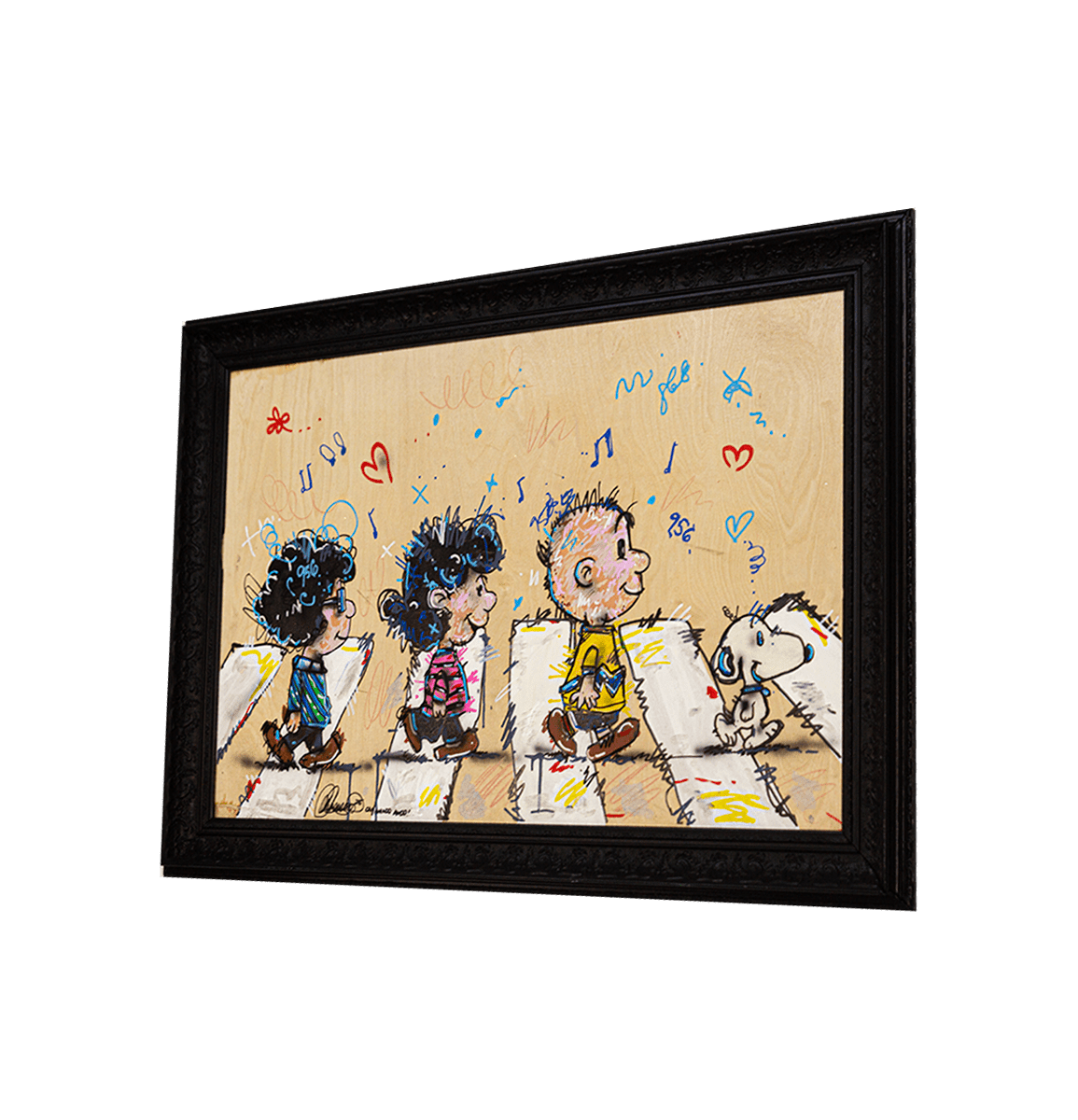 Framed in a sleek, black gallery-style frame, this artwork blends nostalgia with modern flair, making it the perfect addition to any space. Whether you’re a Beatles fan, a Peanuts lover, or both, this piece brings together the best of both worlds.